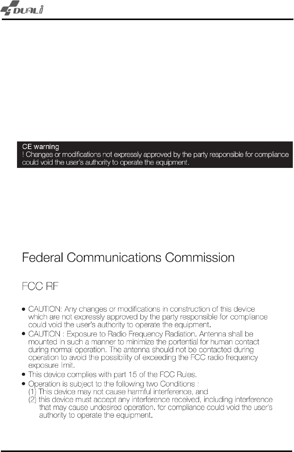 DUALi assumes no liability and is not responsible for infringement of patents and/or any other