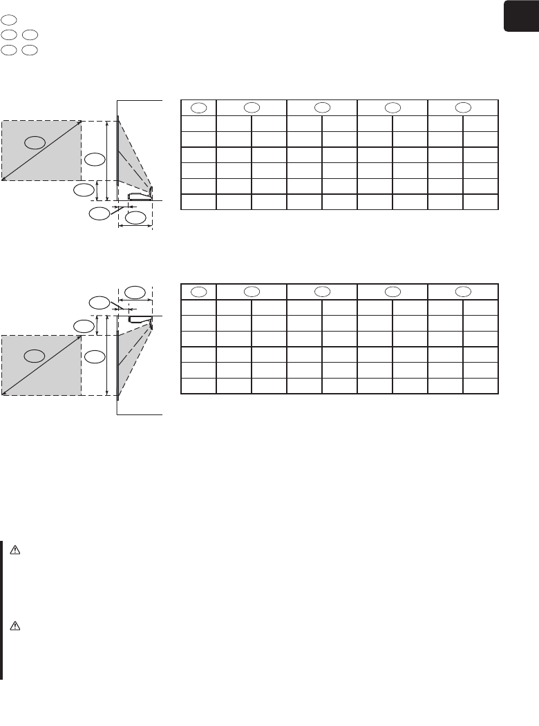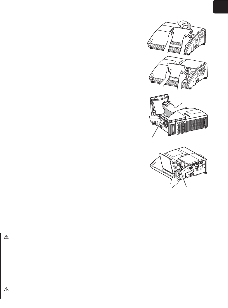 • Install the projector in the way specified in this manual. Otherwise the projection lamp