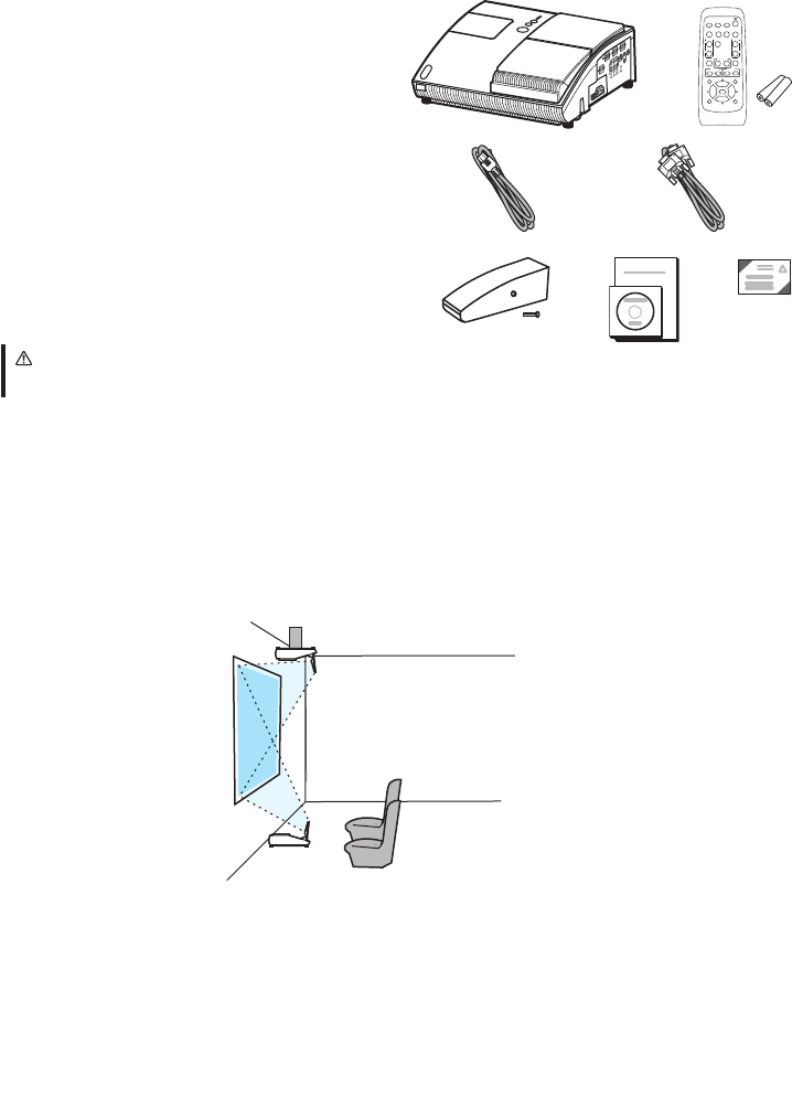• When installing the projector, confirm that there is nothing that blocks the projection