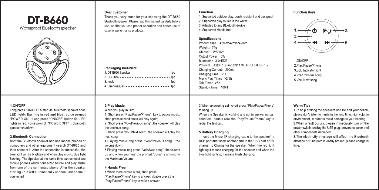 Duntuo Electronics DT-B660 Bluetooth speaker User Manual