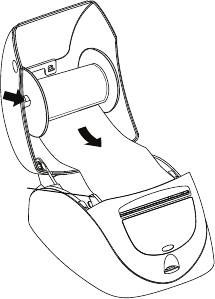 6Insert the label spool into the slot in the printer cover with