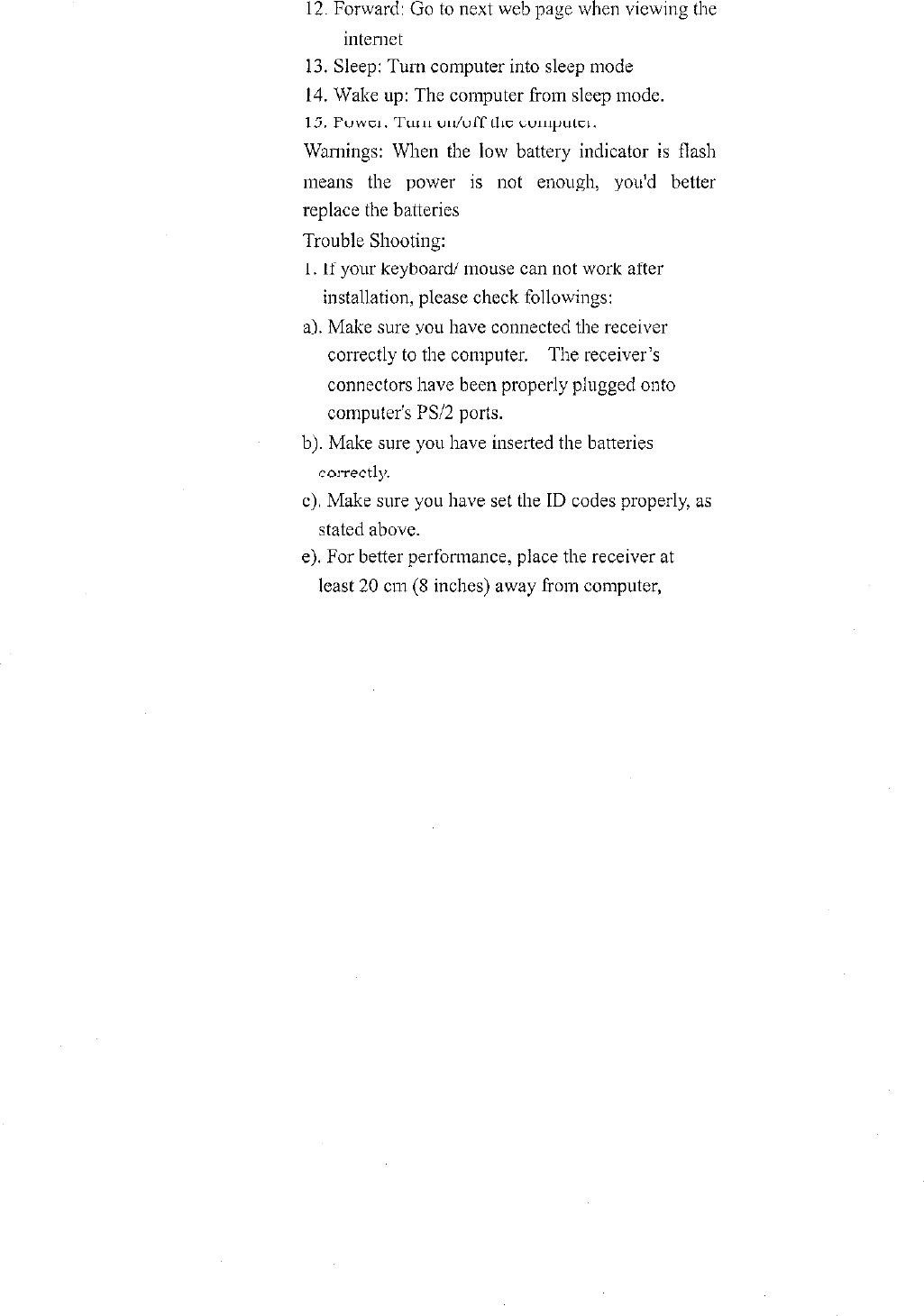 DynaPoint KB998 Cordless Keyboard User Manual N