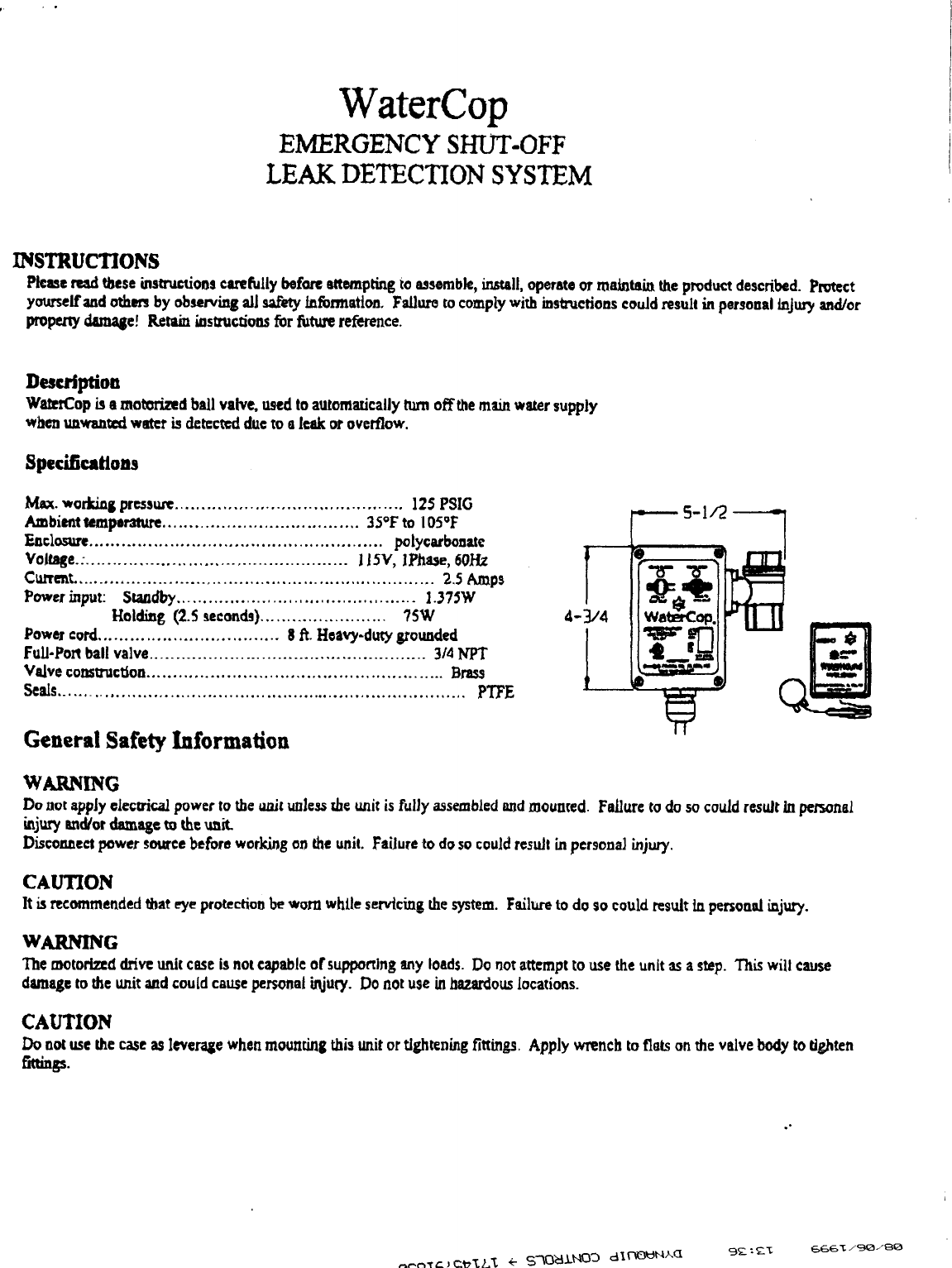 DynaQuip Controls WCK100 Emergency Shut-Off Leak Detection System User Manual Owners Manual