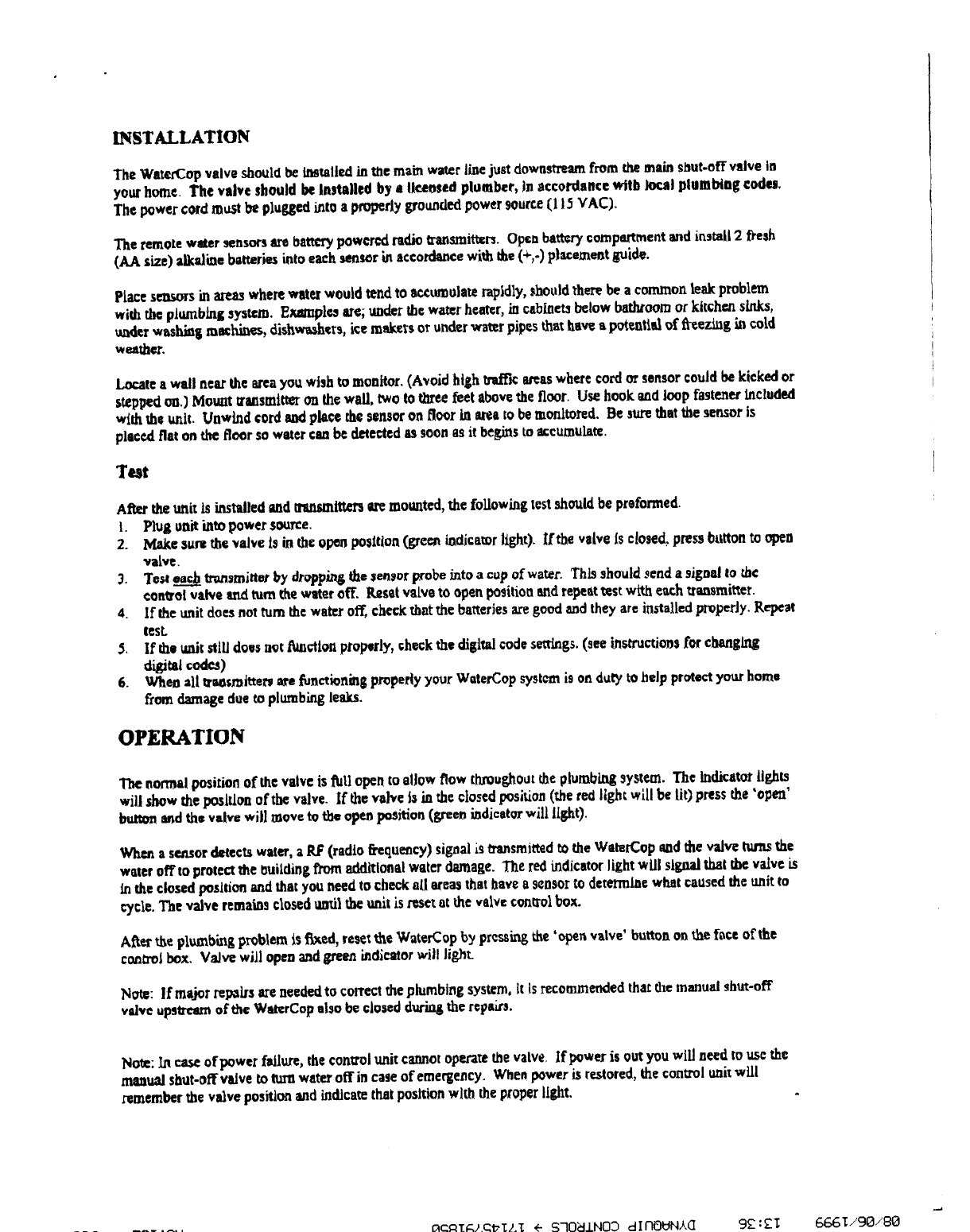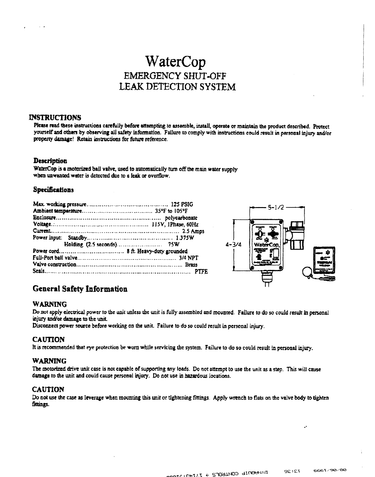 DynaQuip Controls WCK100 Emergency Shut-Off Leak Detection System User Manual Owners Manual