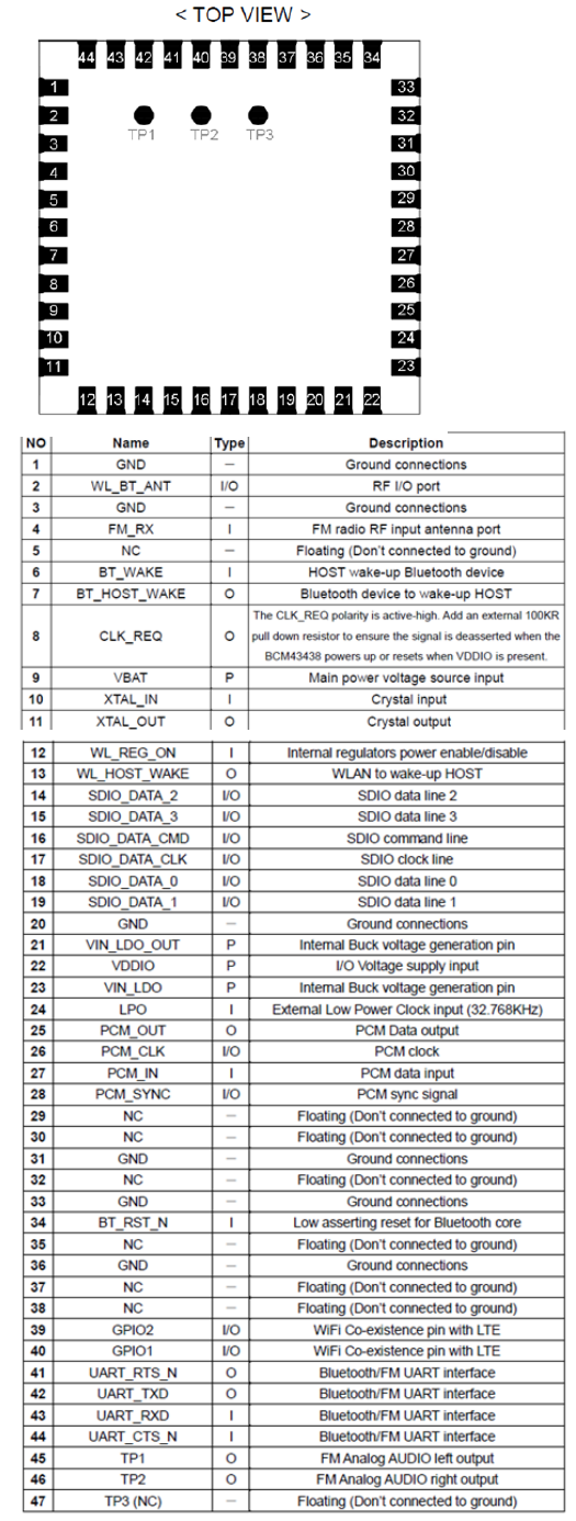 WIFI pin location and description :