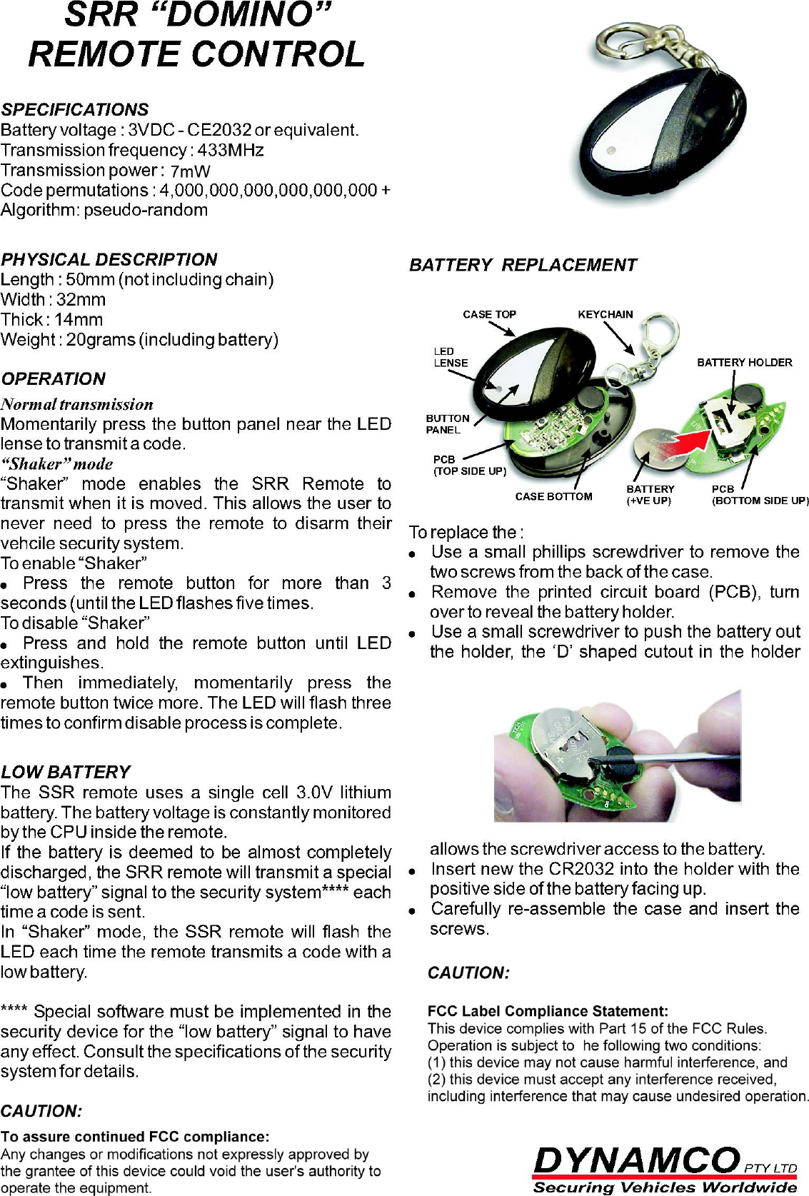 Dynamco TX24 Remote Relay ( Transmitter ) User Manual Dynamco Pty Ltd