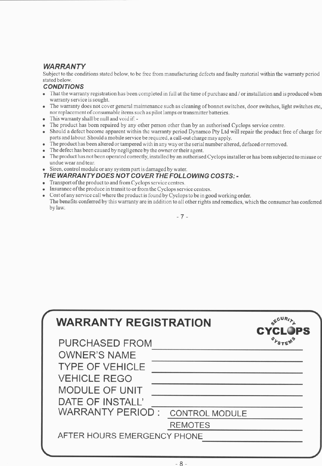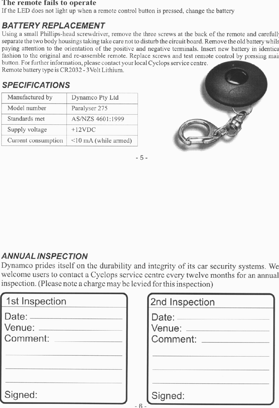 Dynamco Pty. Ltd. Remote Relay (Transmitter) Users Manual