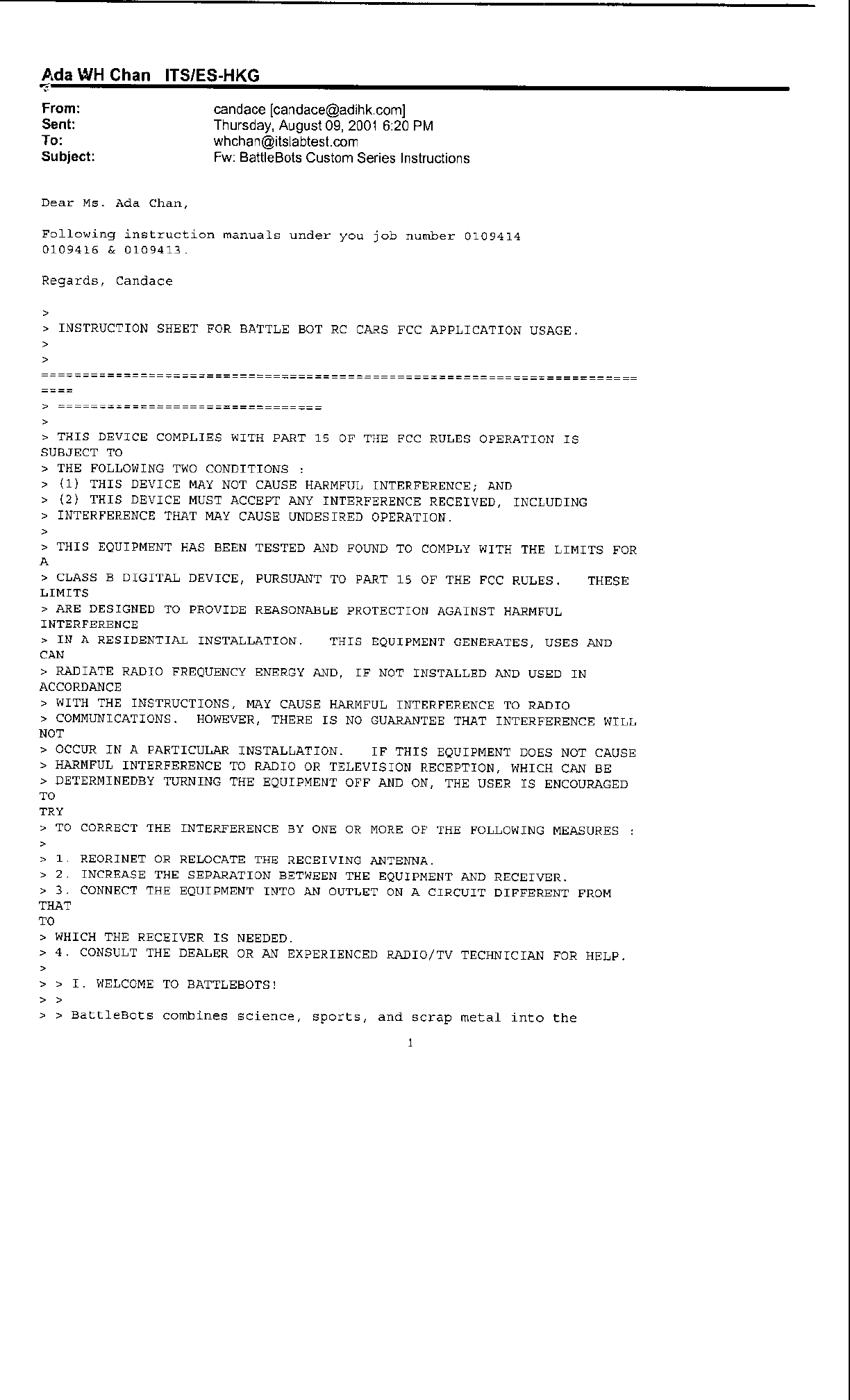 Dynamic 59813-23-R49 Remote Controlled Toy User Manual Draft