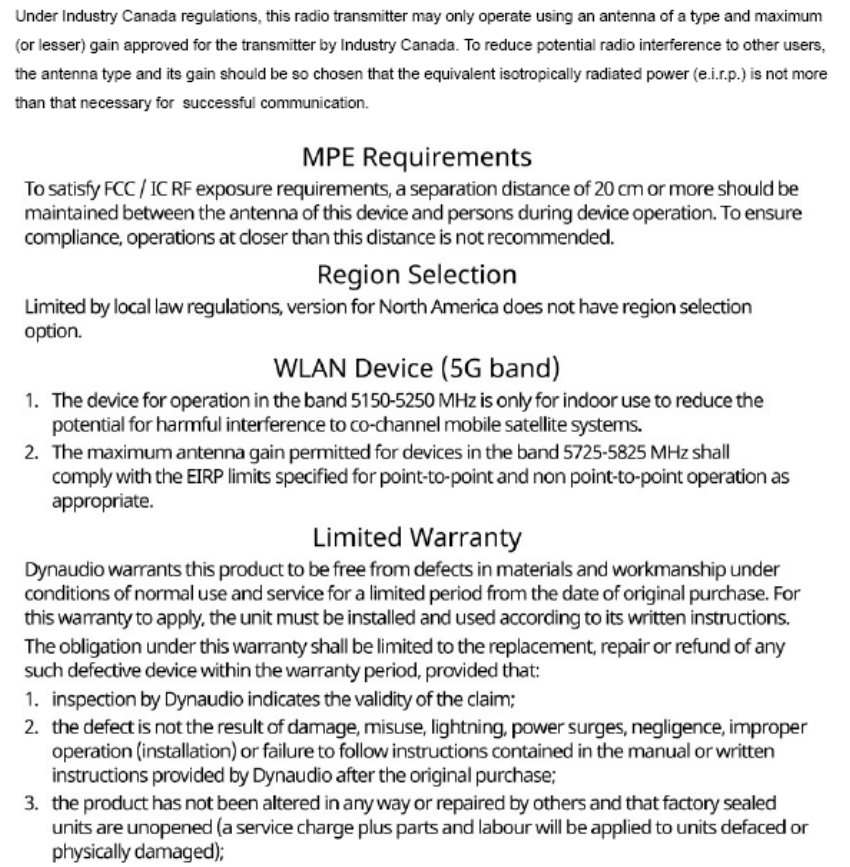 Dynaudio A/S Intelligent Wireless Music System FCC