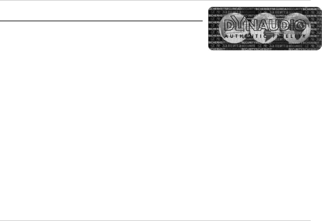 Dynaudio International GmbH, Ohepark 2, 21224 Rosengarten, Germany, Phone +49 - 4108 - 4180 - 0