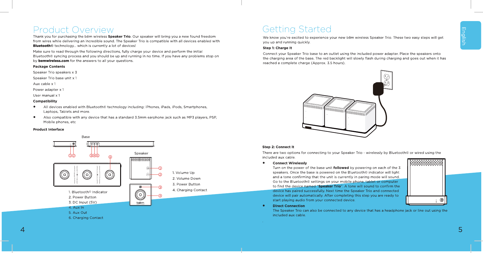 Speaker Trio. The Bluetooth© indicator will light up