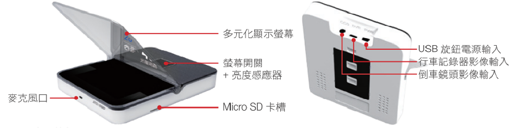Micro SD卡槽: Micro SD input / 行車記錄器影像輸入:Entering for Digital video recording