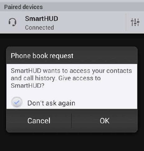 When building a connection, SmartHUD will ask for confirmation to make sure you want to
