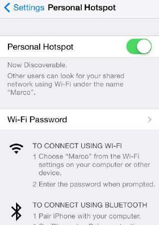 tethering (Note: Different mobile console with different text description)