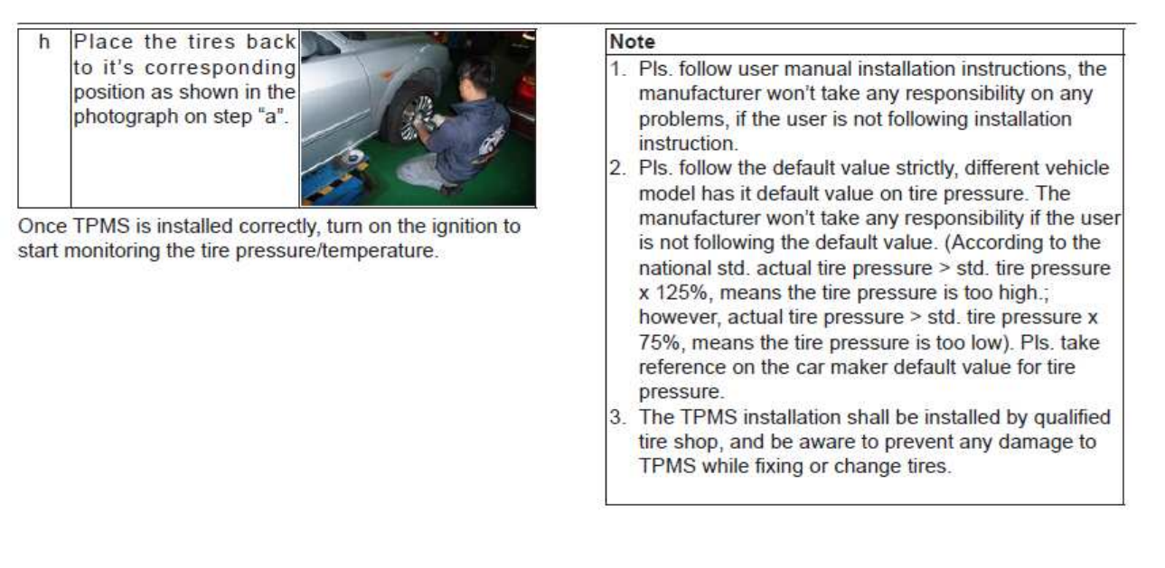 Use of the TPMS requires that qualified personnel according to the instructions here have properly installed it. This system is