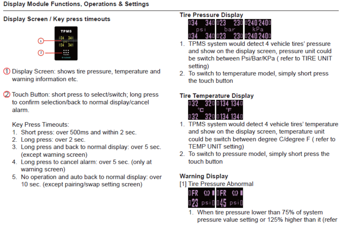E Lead Electronic EL409 TPMS User Manual TPMS FCC