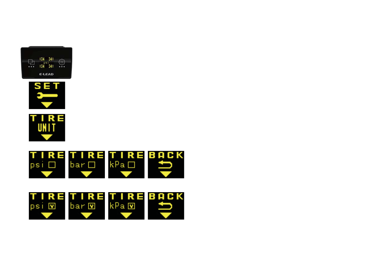display screen, pressure unit could be switched to psi/bar/kPa.