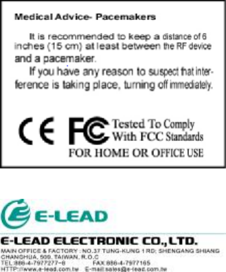 (5). Temperature for Operation: 0'C~+60℃