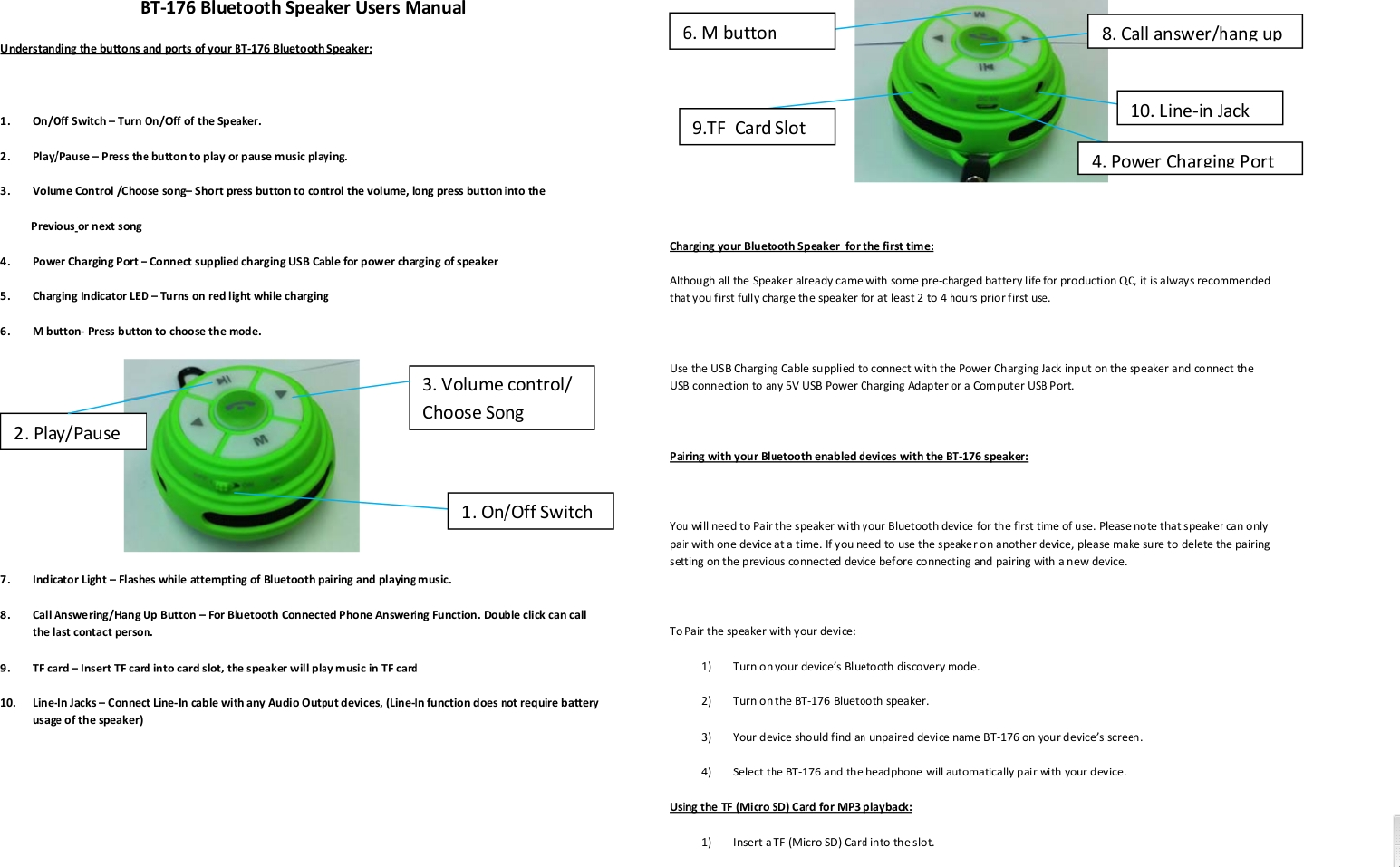 E Power BT-176 Bluetooth Speaker User Manual Manual
