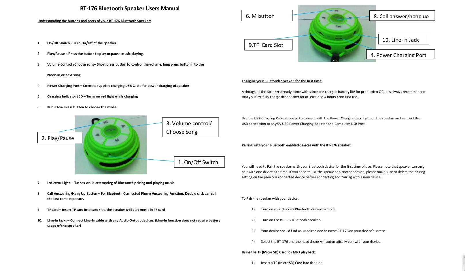 E Power BT-176 Bluetooth Speaker User Manual Manual