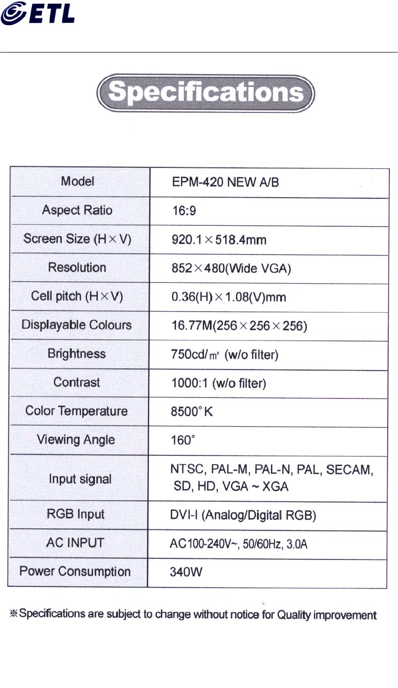 E RAE Electronics Industry Co EPM-420A PDP Monitor User Manual B0209036Mnl