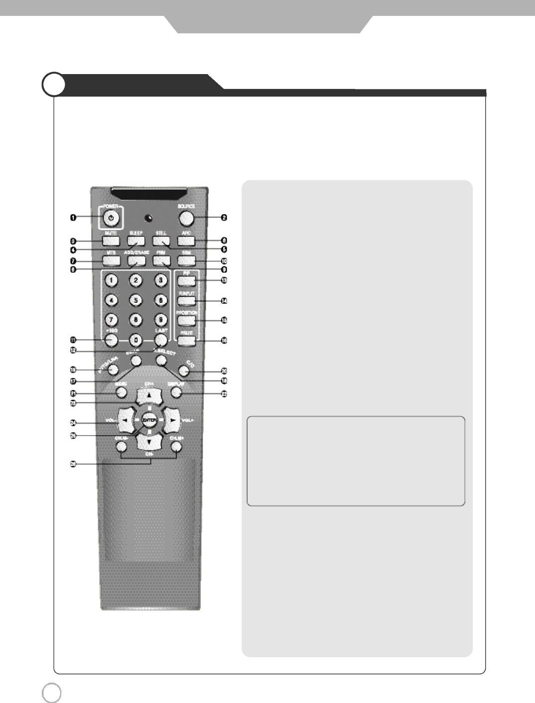 Remote controller does not work. 1. Check if main power is On.