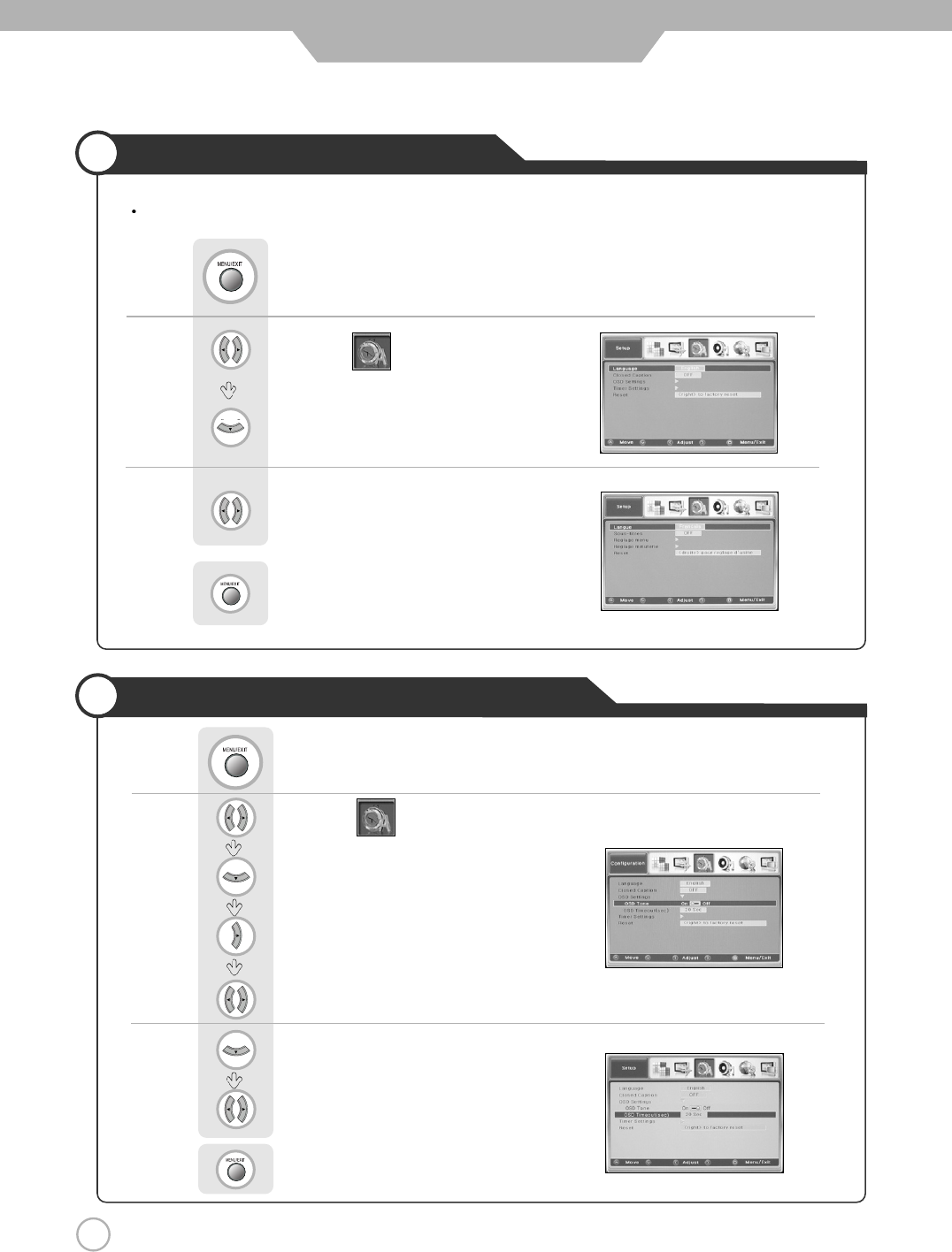 use to select the desired OSD Timeout.