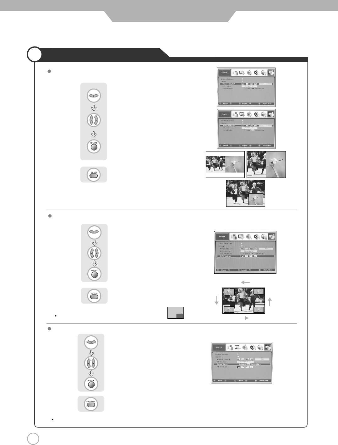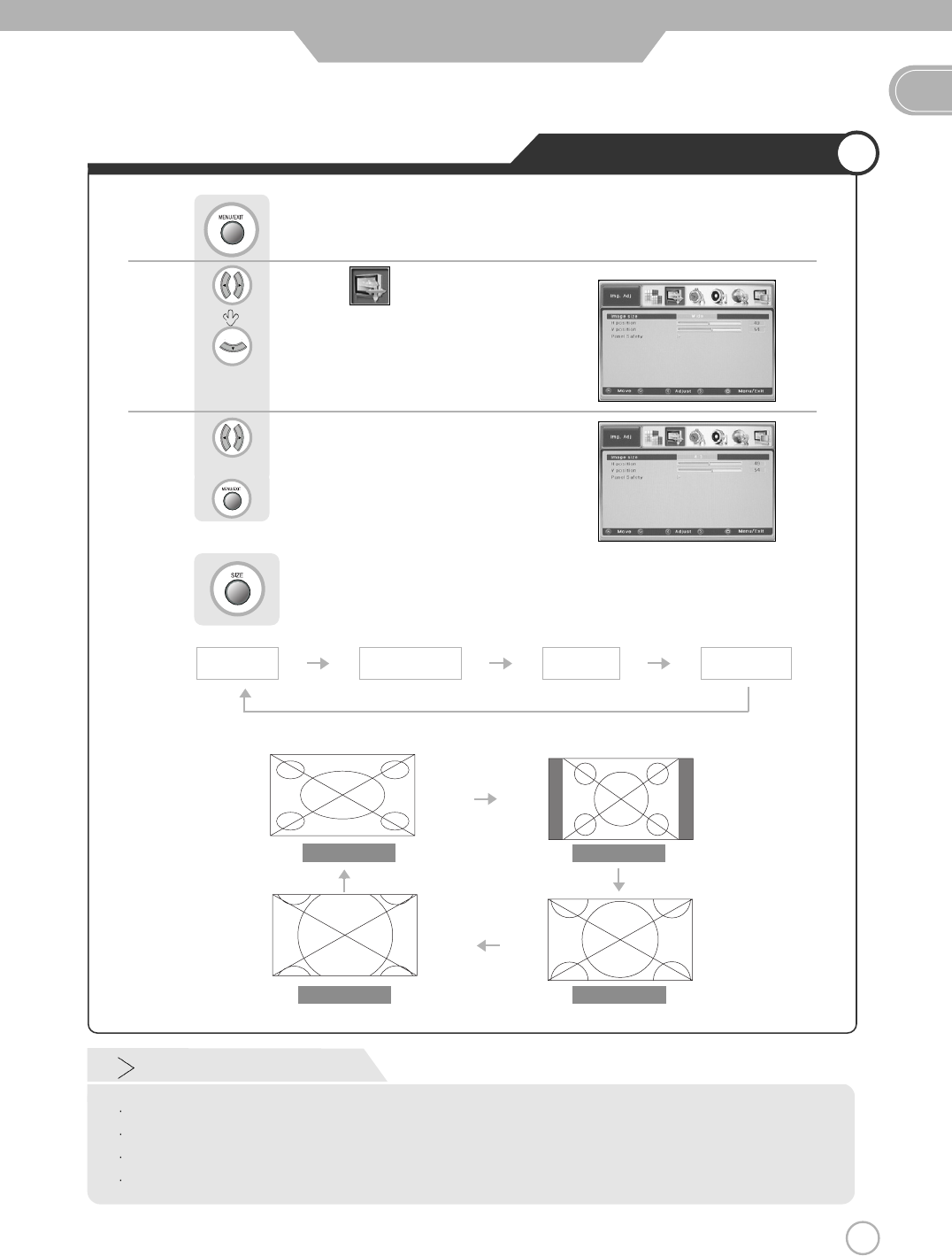 Press button on the remote control (Image Size Control).