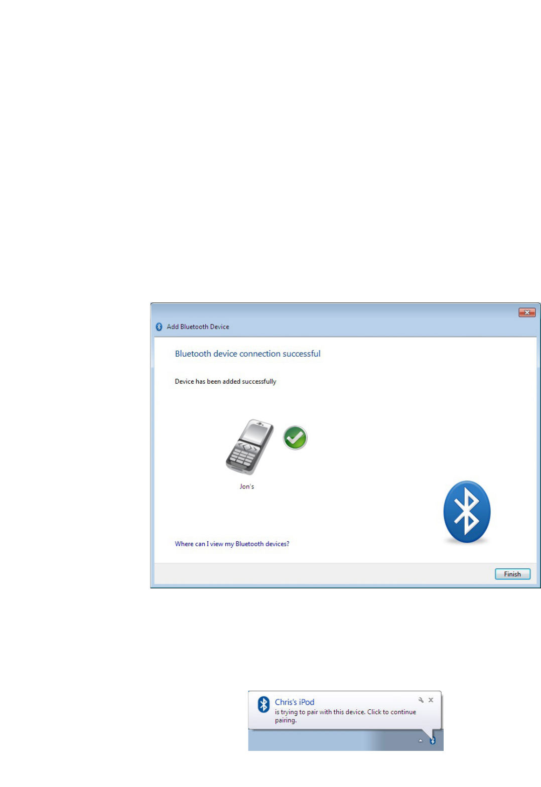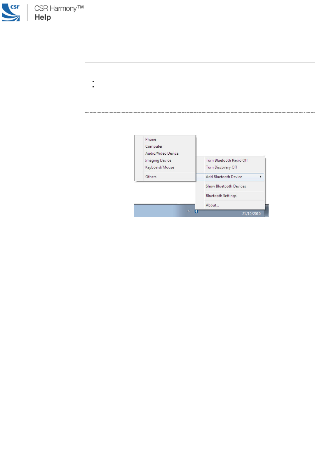 1. Initiate pairing from the Bluetooth device. CSR Harmony will indicate your device is trying to connect to your computer, click it to