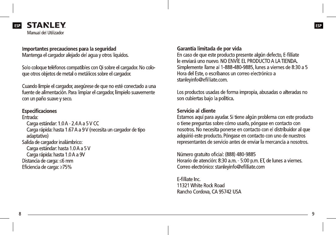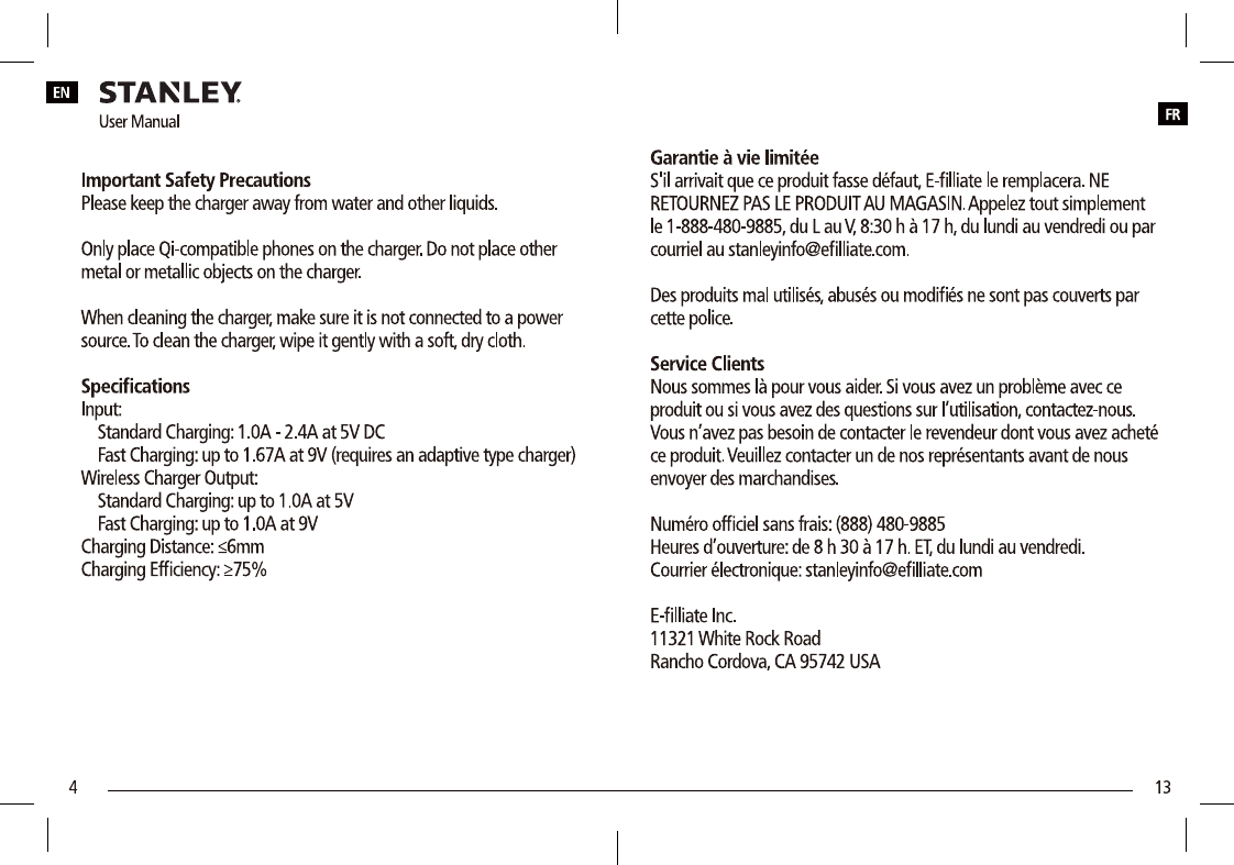 E filliate orporated 1310836B Wireless Charger User Manual aa