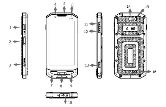 5)Earpiece 12) Volume Down