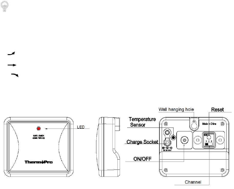 2. The remote sensor (transmitter) can be placed on a flat surface indoor or outdoor. Make sure the sensor is