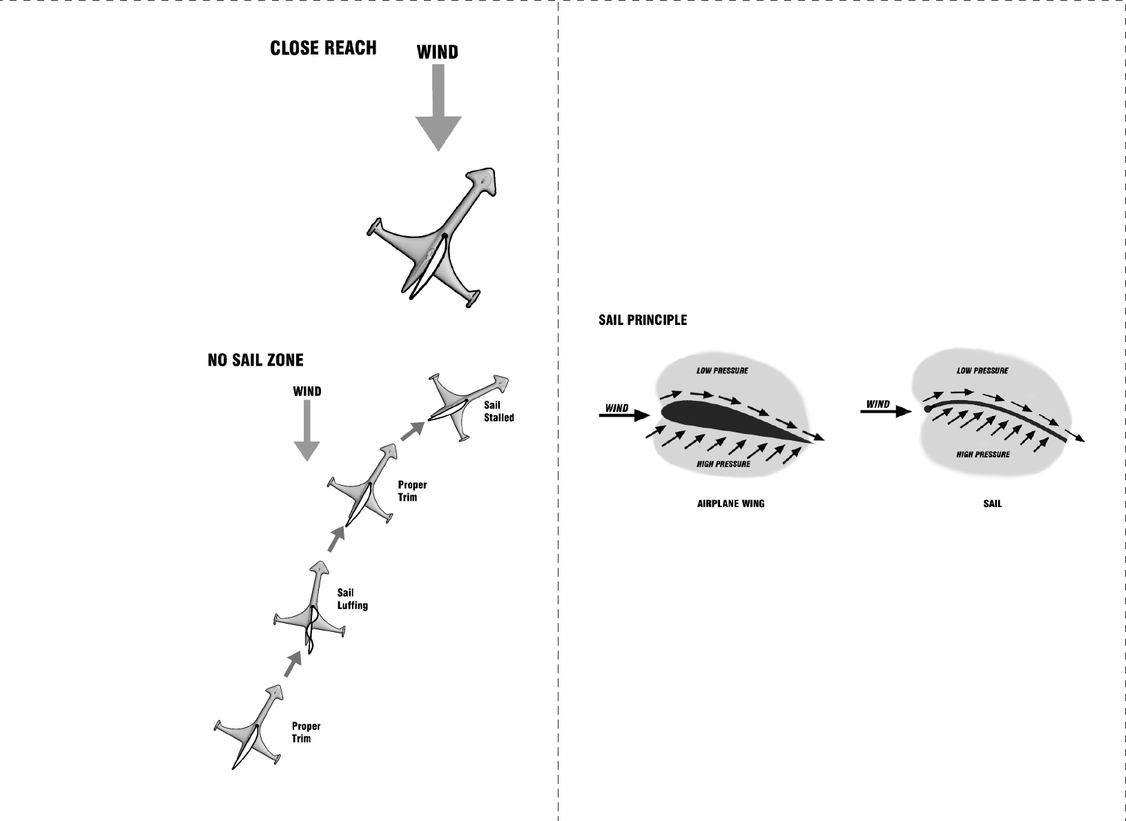 correct sail angles known as "sail trim" in relationship to wind direction.