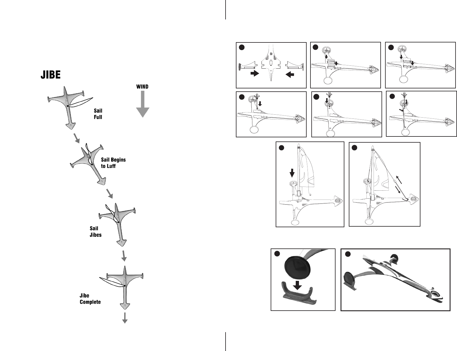 Jibe - Turning the stern through the wind.