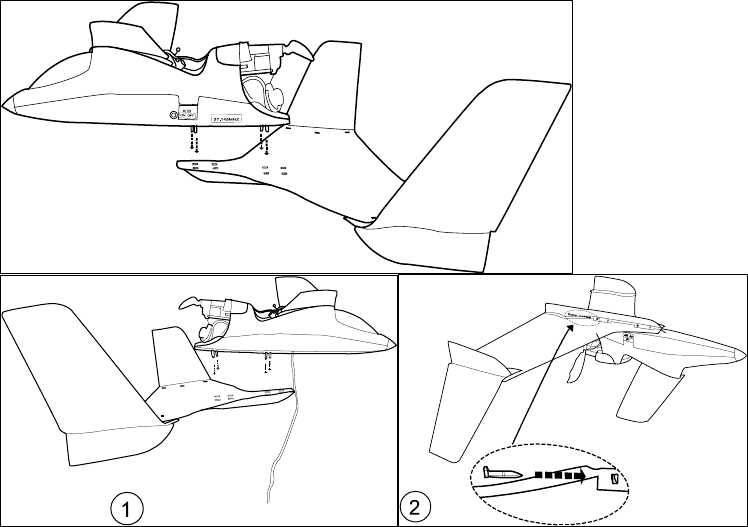 Secure your AIRIDER to the main wings by inserting the fuselage fasteners.