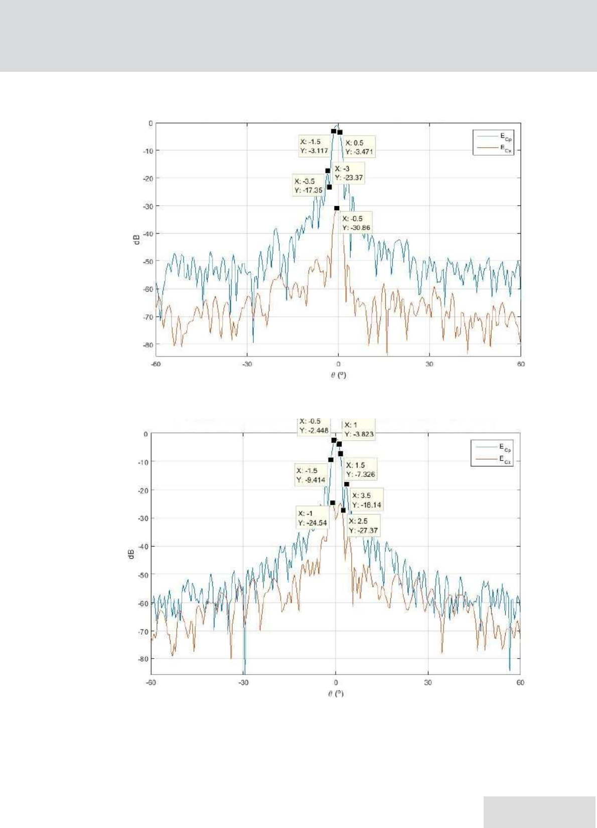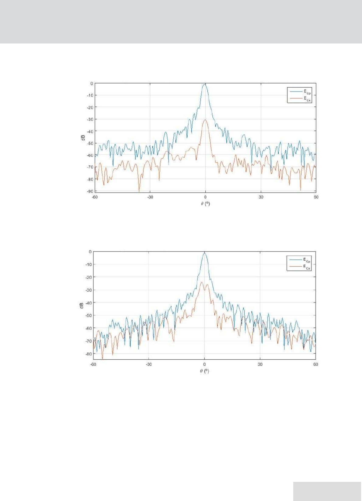 Radiation pattern. Copolar and crosspolar component. Plane: ϕ=0º.