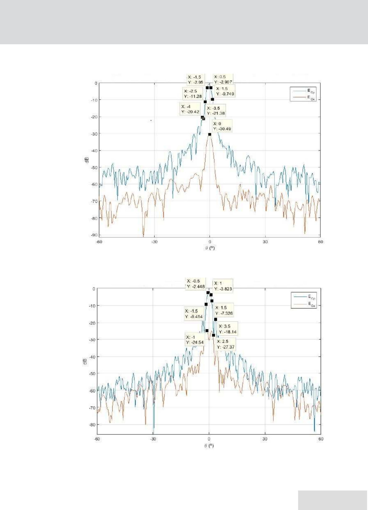 Radiation patterns of two othogonal planes (ϕ = 0º and 90º) to the plate of the