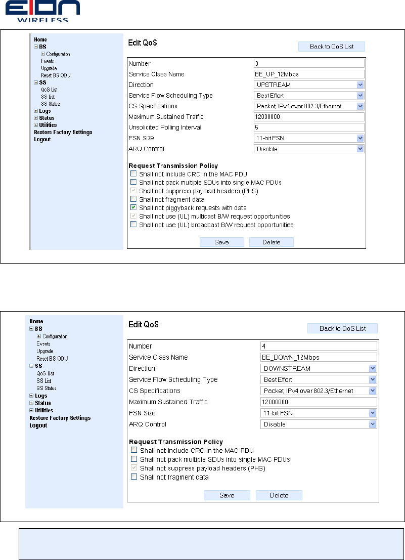 the SAP for delivery on the connection defined by the CID. Implementation of each