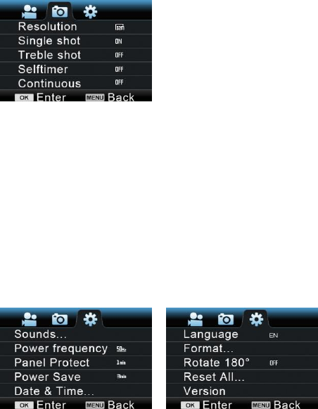 3. Settings (Video Settings, Photo Settings, and System Settings)