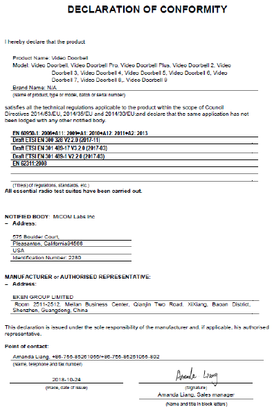 EKEN GROUP LIMITED Video Doorbell Users Manual