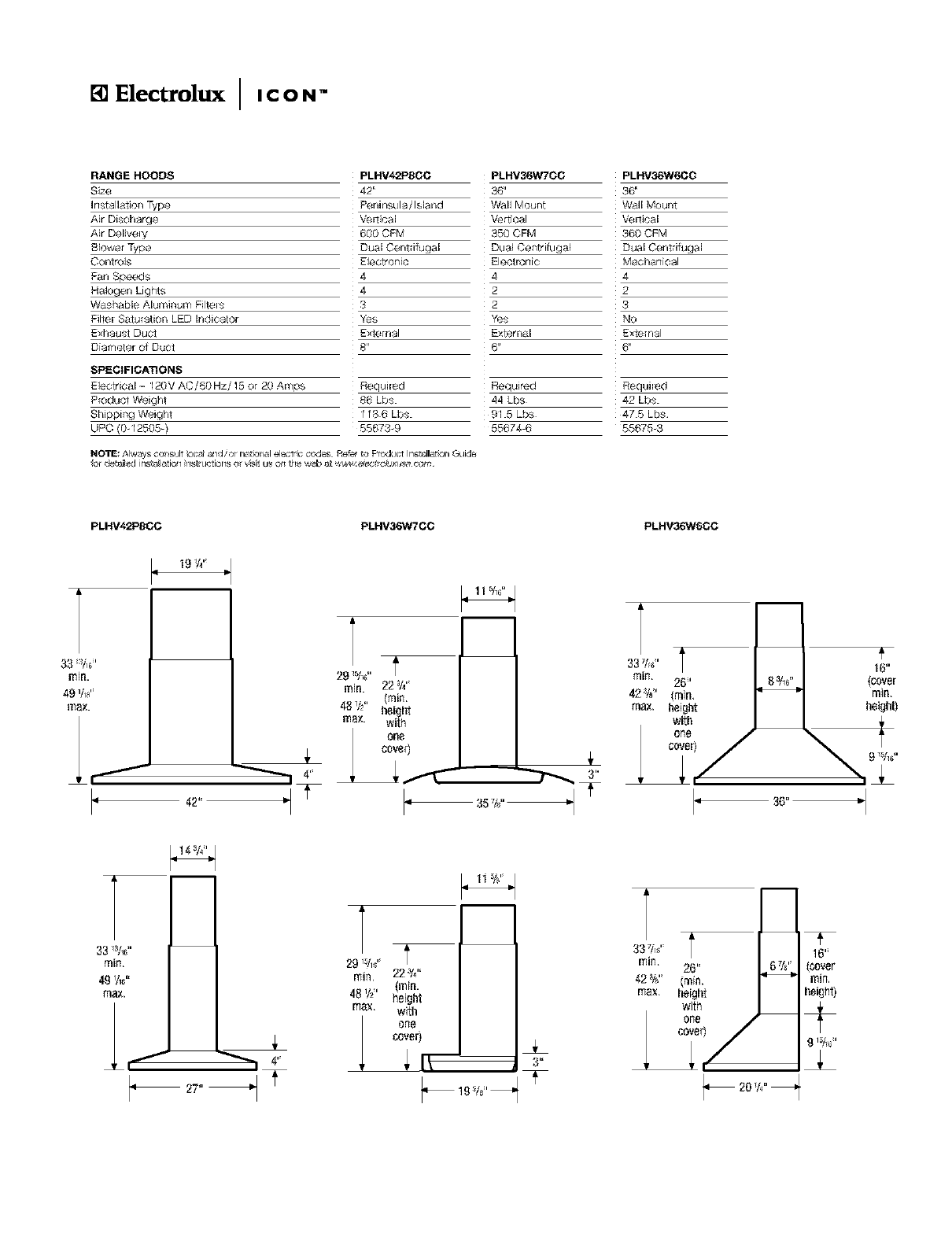 RANGE HOODS PLI'IV42PSCO PLHV36W7CC PLI'IV36W6CC