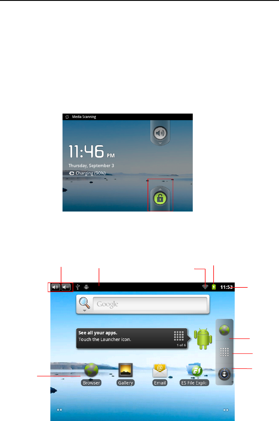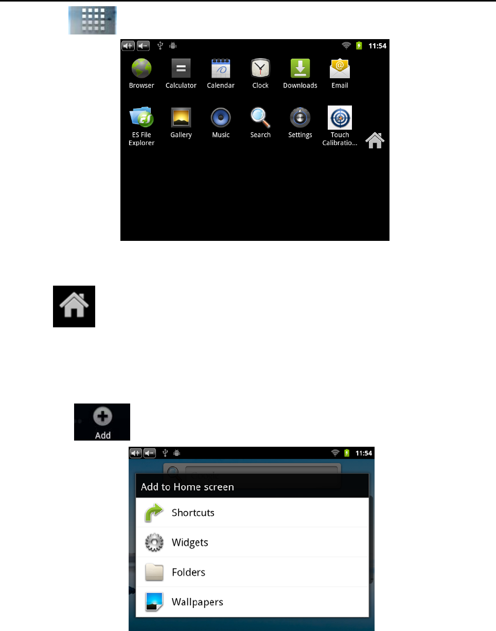 Through sliding the screen upward and downward, you can browse shortcut icons of all