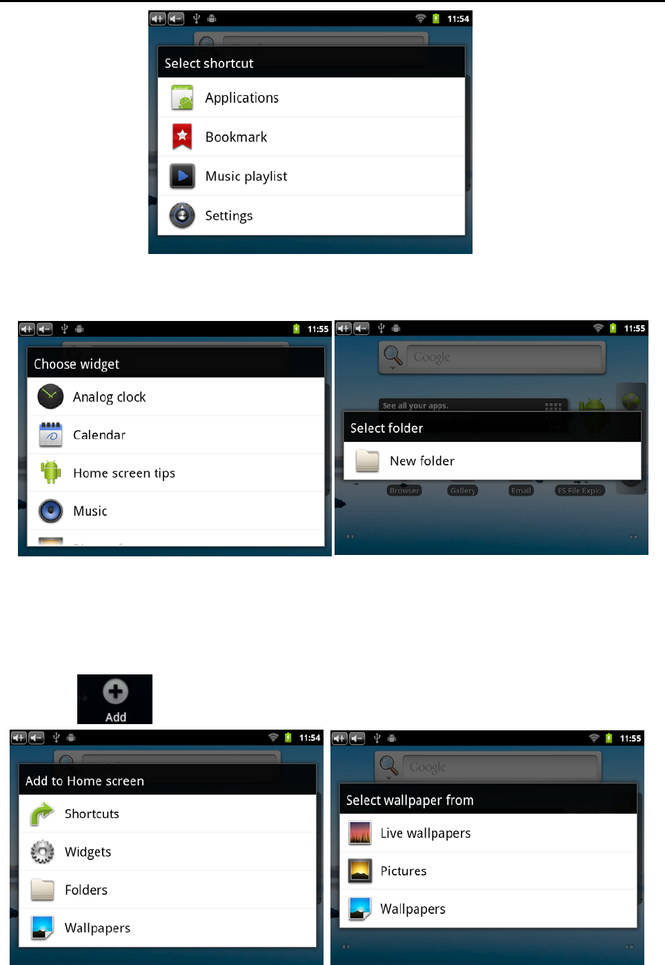 1-2 Click "Widgets" or "Folders" to enter the next menu