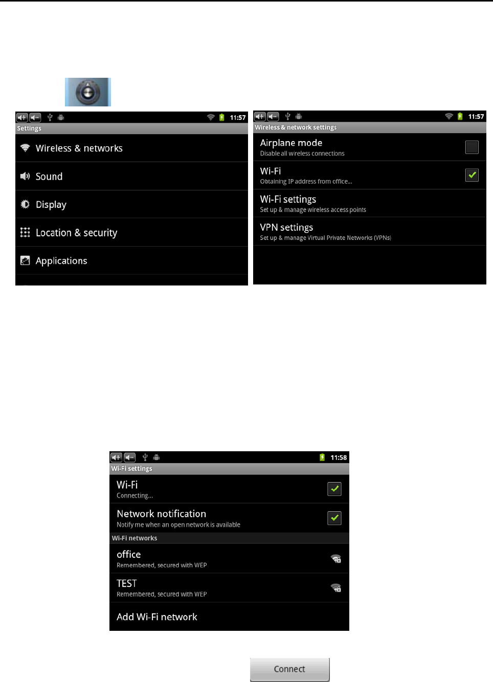 1-2 Click "Wireless & Networks" to enter the next interface (See top right)