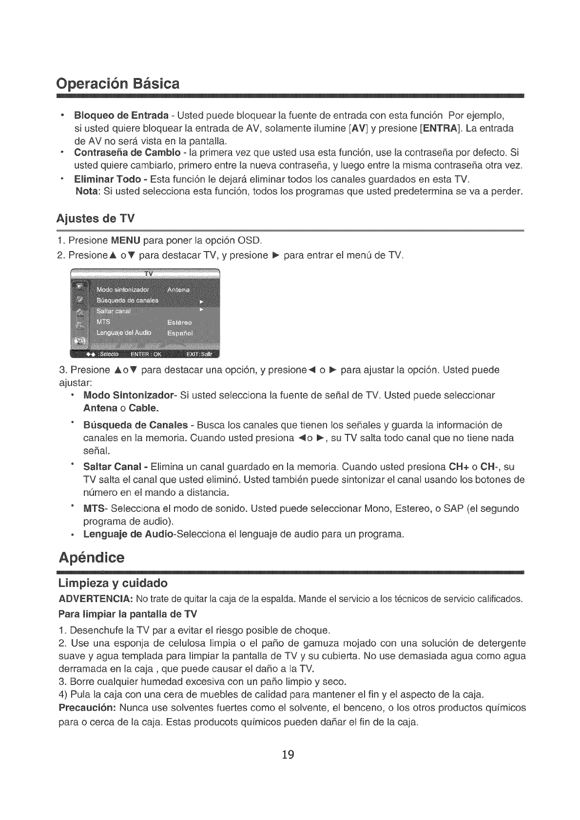 Ajustes de TV ................................................................................................................................. 19