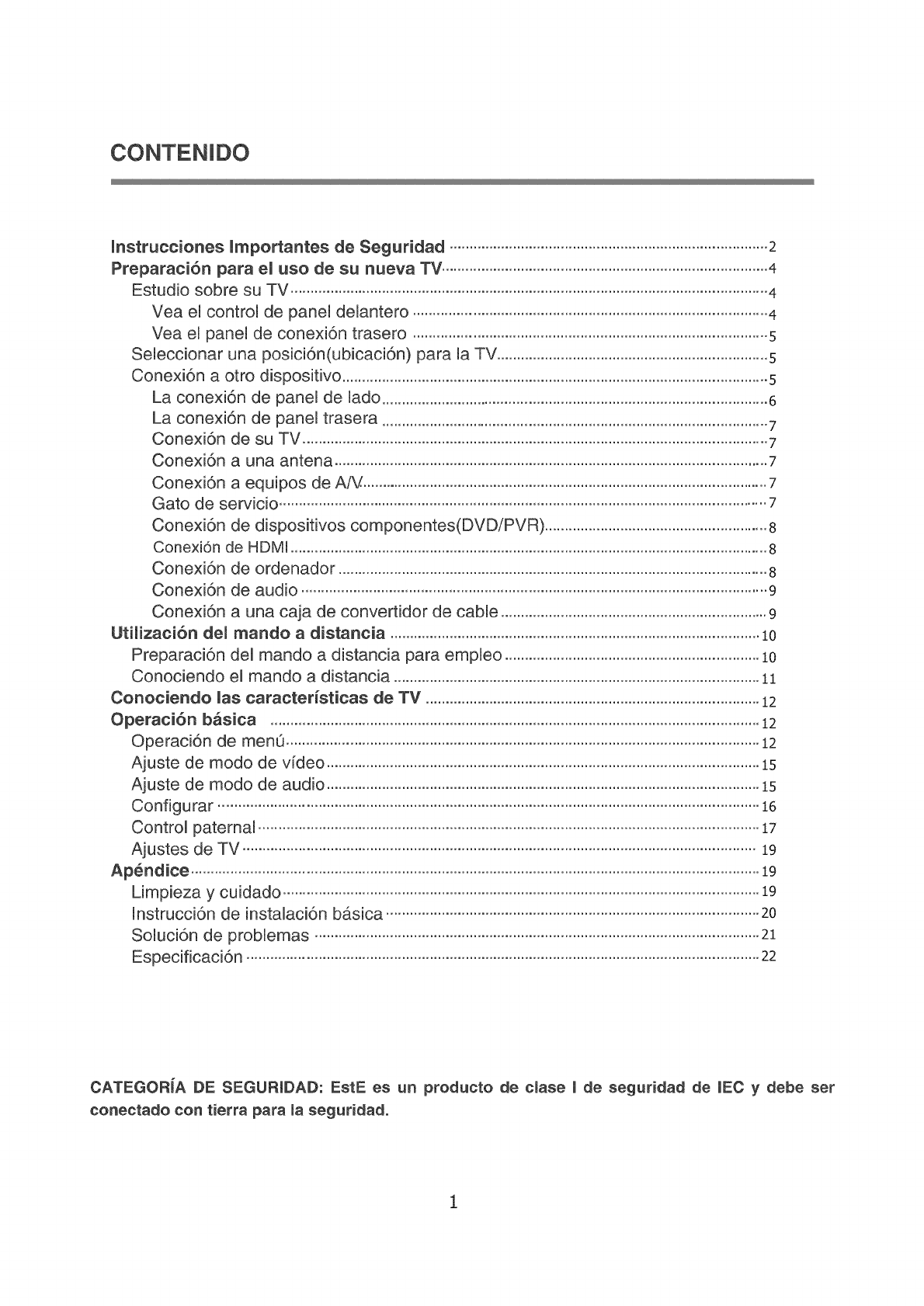 CATEGORiA DE SEGURIDAD: EstE es un producto de clase J de seguridad de JEC y debe set