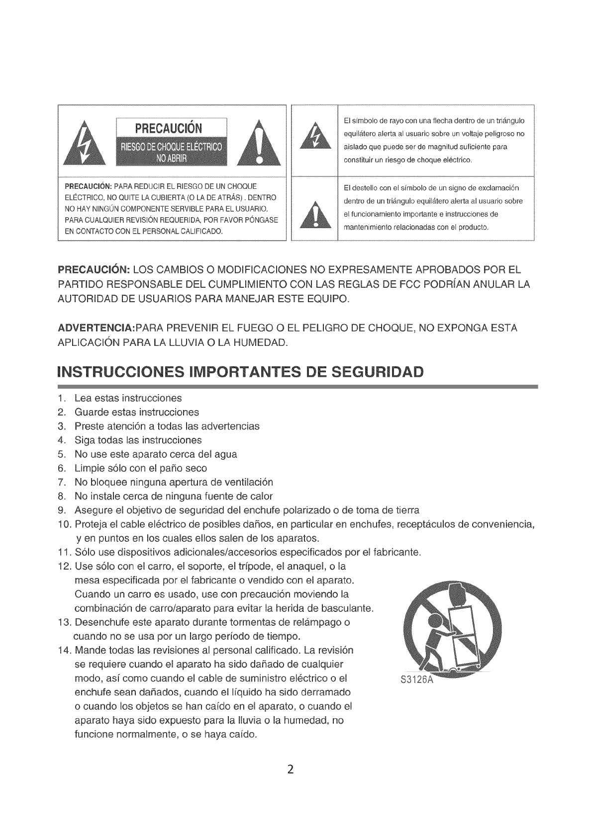 Unstrucciones Umportantes de Seguridad ................................................................................ 2