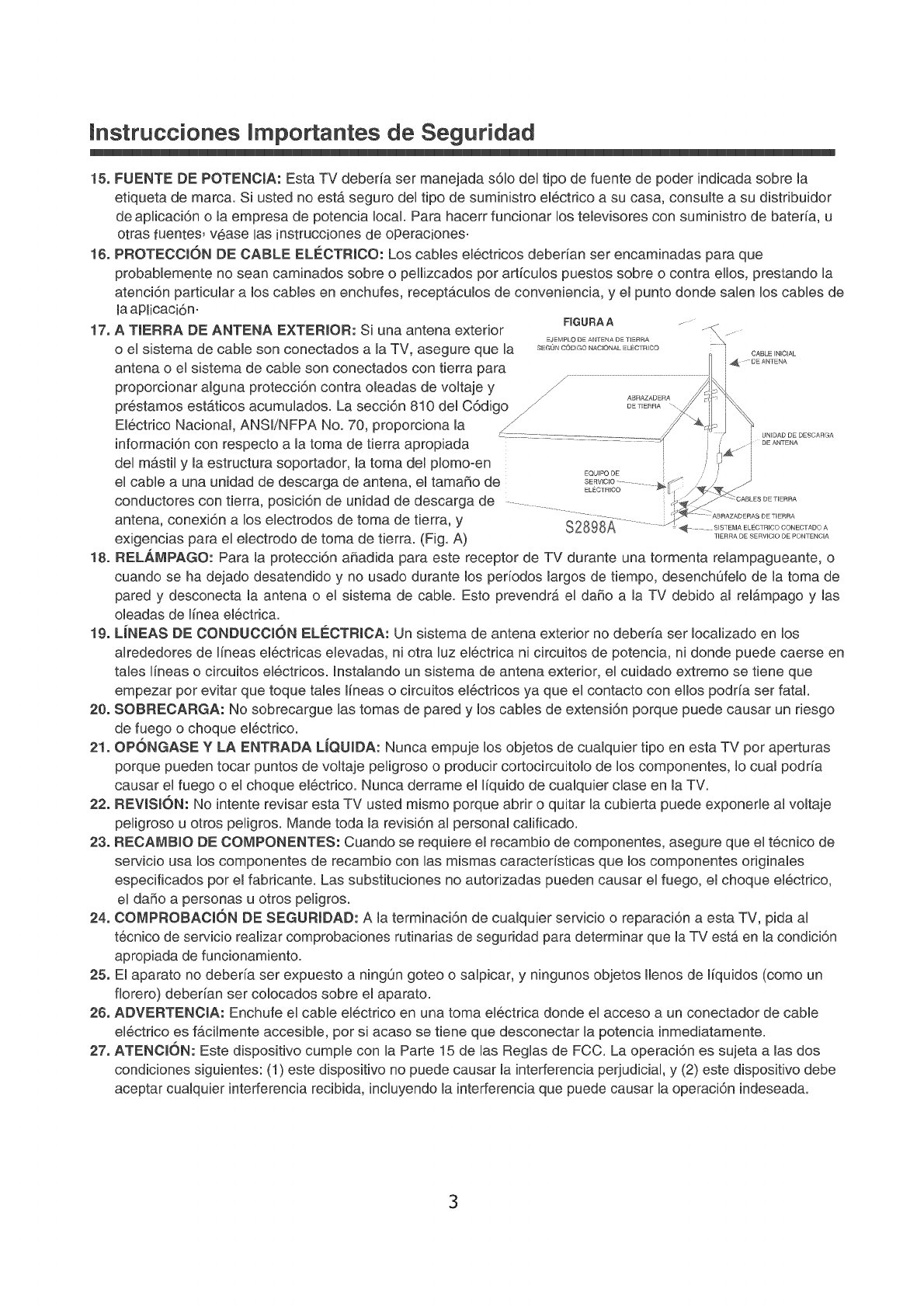 15. FUENTE DE POTENCIA: Esta TV deberia ser manejada s6Io deI tipo de fuente de poder indbada sobre la