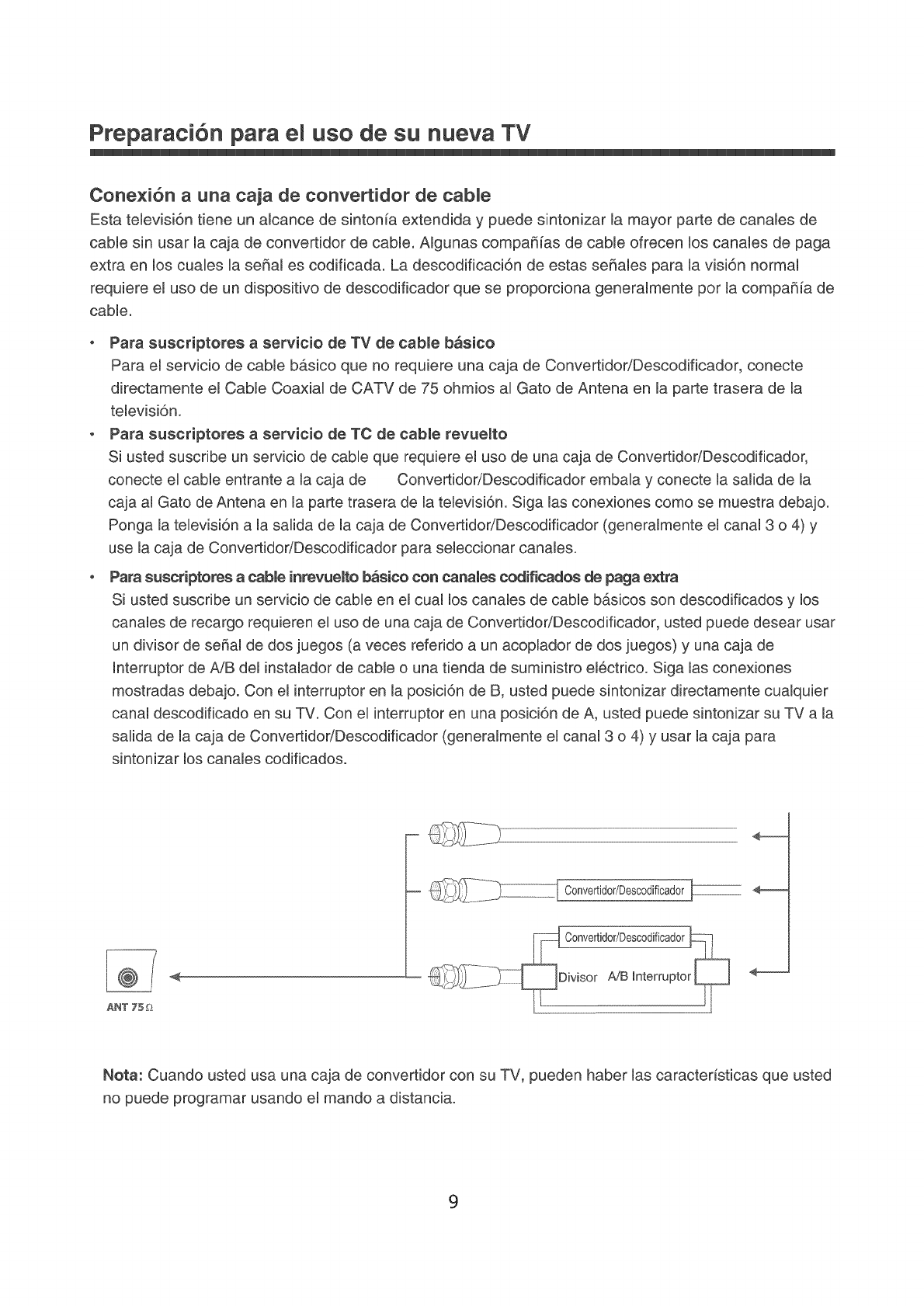 Conexi6n a una caja de convertidor de cable ................................................................... 9