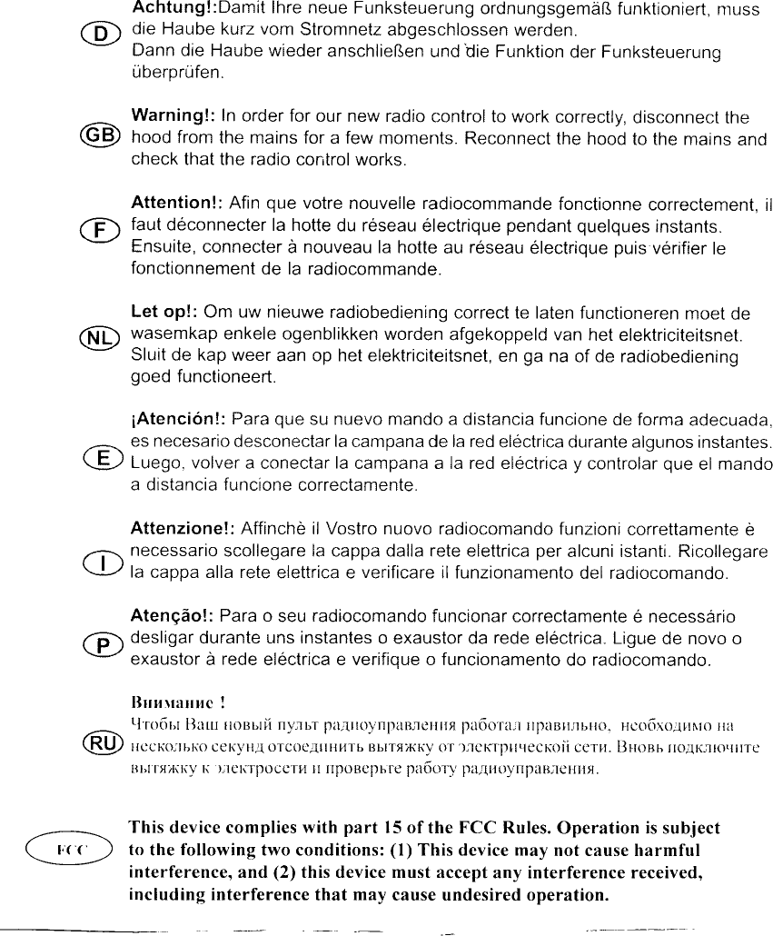 ELICA S p A RFT01 Remote control transmitter User Manual 1 of 2